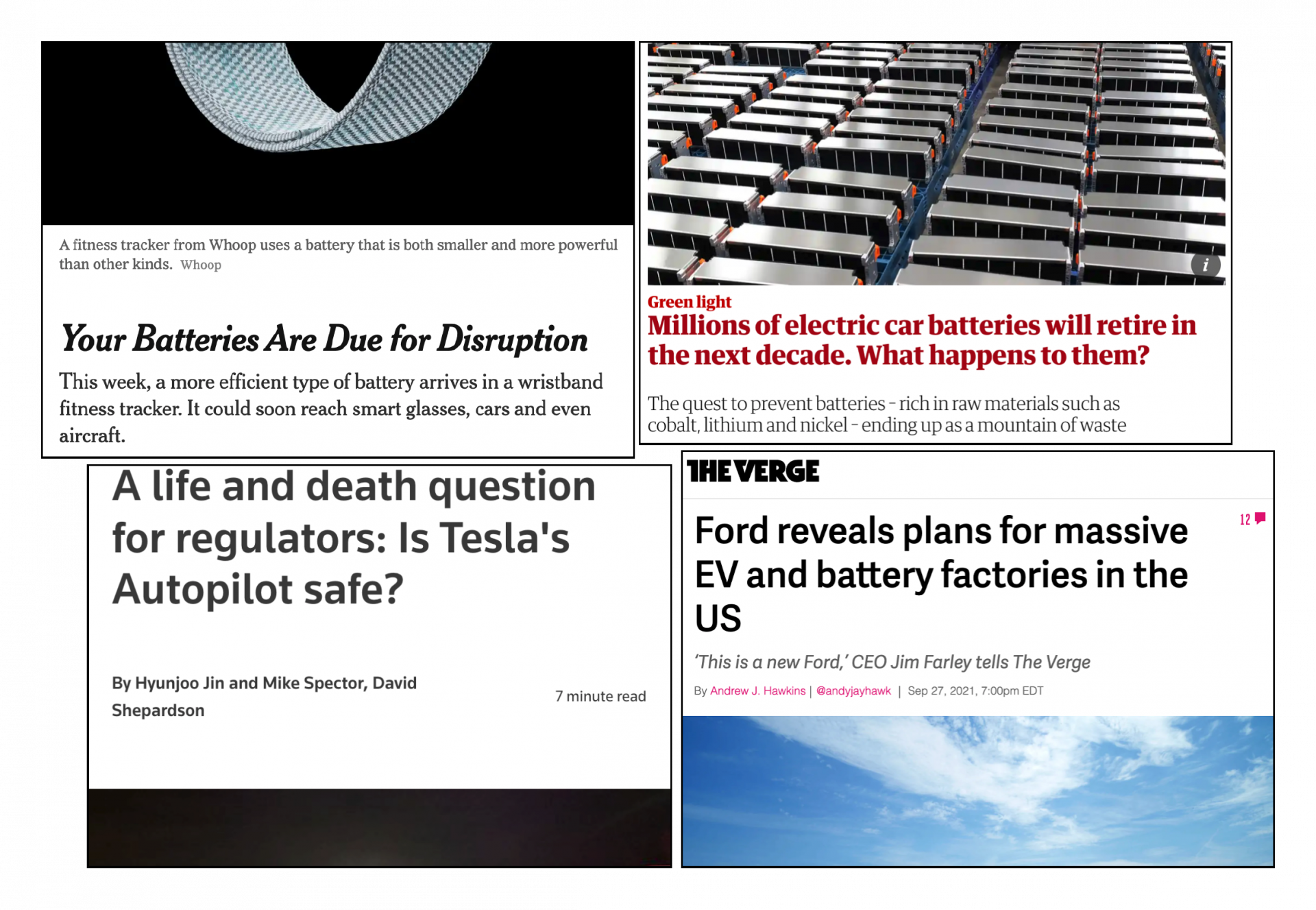 Batteries are in many of the headlines this month — new technologies, factories, supply chains, standards, and recycling methods.