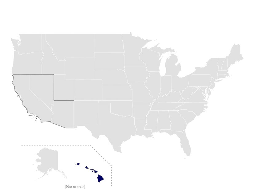 AZ, CA FL HI, IL, NE, MN**, NM, NC, OH