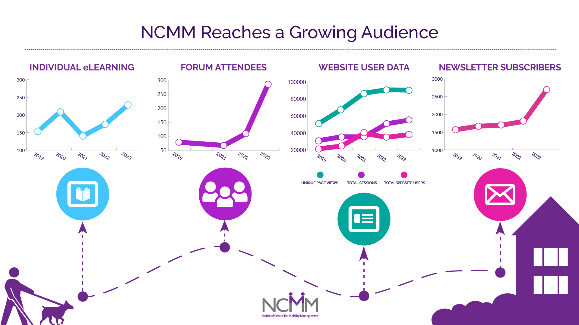 NCMM’s activities are purposefully designed to positively impact the work of mobility managers and inform their interactions with cross-sector stakeholders.  Below you’ll find key metrics tracking our progress on how well we are doing on achieving our goals. Learn more about the people behind NCMM,  read about our work in communities, and stay current via our resources in our Knowledge Center.
